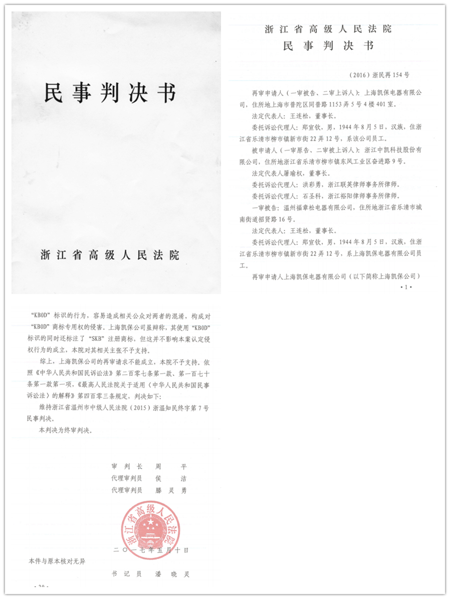 2017年5月10日,浙江省(shěng)高級人民法院作出終審(shěn)判決,草莓秋葵菠萝蜜黄瓜榴莲视频一場曆時三年的商標(biāo)維權案終於塵埃落定。本案(àn)得從2014年3月說(shuō)起(qǐ),因上海凱保長期蓄意侵害草莓秋葵菠萝蜜黄瓜榴莲视频商標權,在產品包裝盒、產(chǎn)品標(biāo)牌、企業官網、產品樣本、廣告等媒介平台上大量使用與草莓秋葵菠萝蜜黄瓜榴莲视频KB0、KB0J、KB0D等商標相似(sì)或近似字樣,並有意作一些誤導消費者的宣傳,被草莓秋葵菠萝蜜黄瓜榴莲视频訴至法院。樂清市法院受理此案後,通過大量的調(diào)查了解,以大量的事實證據為依據,認(rèn)定上海凱保侵權事實成立,判(pàn)令上海凱保停止侵權,賠償損失。上海凱保(bǎo)不服,上訴到溫州市中院,溫州市中院(yuàn)通過對案(àn)件的審查,最終在充分的事實和證據基礎上作出了(le)維持一審判決的二審判決。上(shàng)海凱保為達到其不可告人的目的,使(shǐ)出一套“纏”和“拖”的絕(jué)技,對二審法院的判決仍然(rán)表示不服,向浙江省高院提出再審申請。省高院受理案件後,開(kāi)庭再審該案,在大(dà)量的事實和證據麵(miàn)前,最終作出(chū)了維持溫州市中院二審判決的終審判決。這(zhè)一判決(jué),標誌著一些別(bié)有用(yòng)心,惡意侵害或蓄(xù)意侵占(zhàn)草莓秋葵菠萝蜜黄瓜榴莲视频商標(biāo)權的不(bú)法行為的破滅。