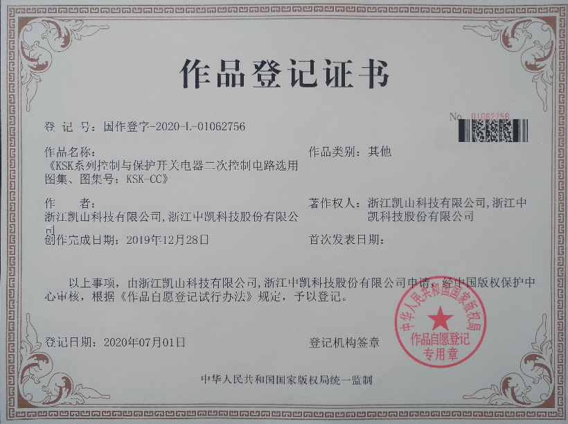 近日,國家版權局頒發(fā)作品登(dēng)記(jì)證書,由浙江草莓秋葵菠萝蜜黄瓜榴莲视频科技(jì)股份有(yǒu)限公司全資子公司浙江(jiāng)凱山科技有限公司為著作權人的兩本(běn)在工(gōng)程設計及應用中的標準設計圖集獲得作品登記(jì)。兩(liǎng)本圖集分別為XLCPS係(xì)列控製與保護開關電器二(èr)次控製電(diàn)路選用圖(tú)集》(圖集(jí)號XLCPS-CC)、《KSK係列控製與(yǔ)保護開(kāi)關電器二次控(kòng)製電路(lù)選用圖集》(圖集號KSK-CC)。